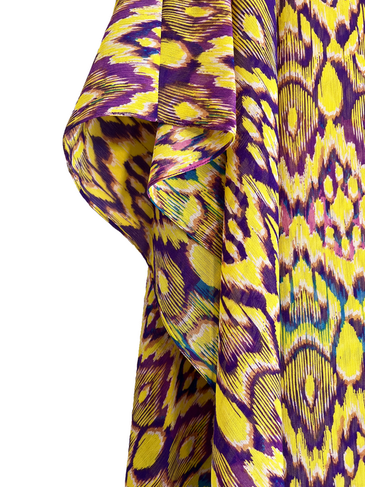 Yellow & Purple Sheer Ikat Beach Cover Up