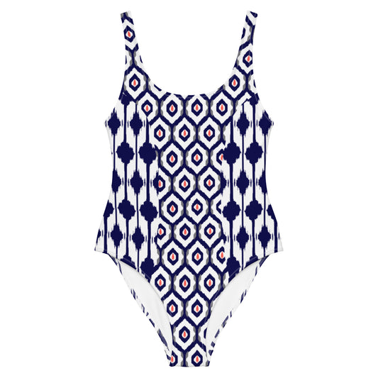 Blue + Coral Ikat Mixed Print One-Piece Swimsuit