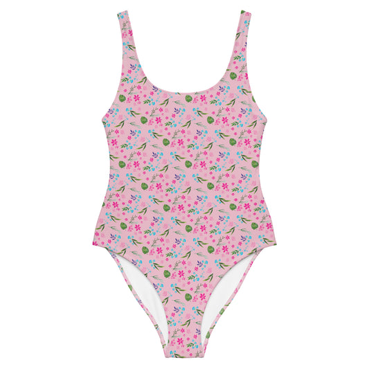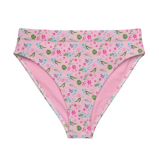 Pink Tropical Floral Print Eco Friendly High-Waisted Bikini Bottom