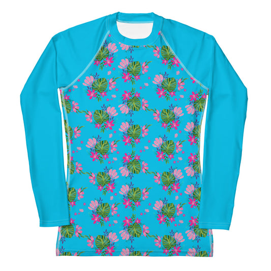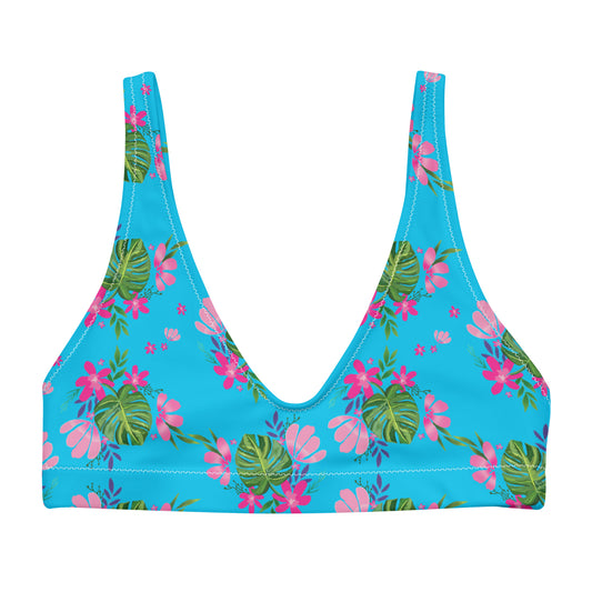 Blue Tropical Floral Print Eco Friendly Bikini Top w/ Removable Padding