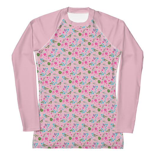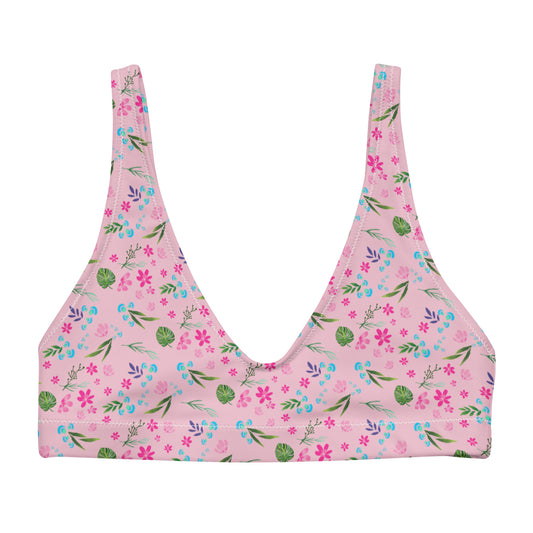 Pink Tropical Floral Print Eco Friendly Bikini Top w/ Removable Padding