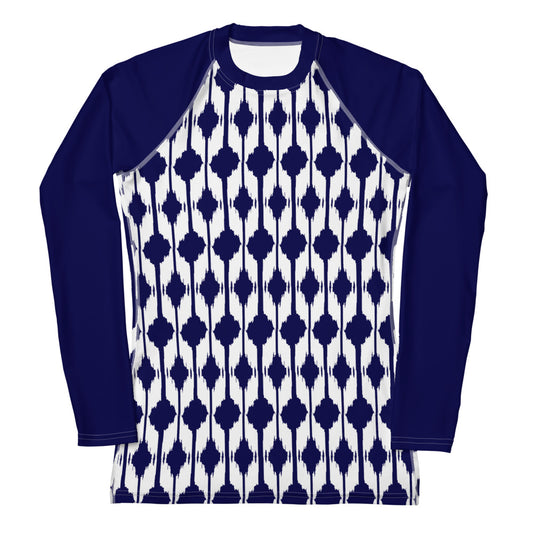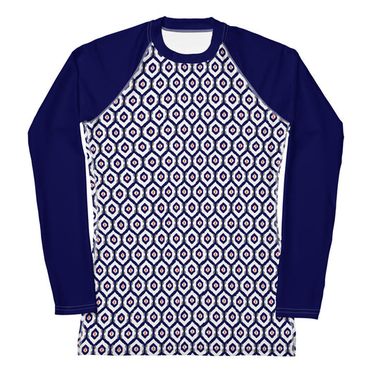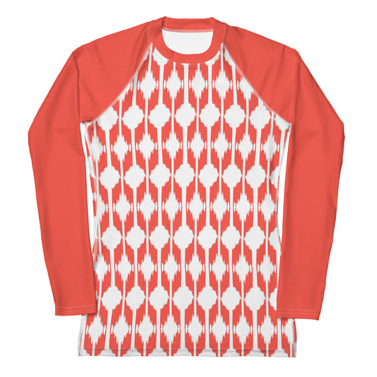 Blue & Coral Ikat Print Eco Friendly Bikini Top w/ Removable Padding