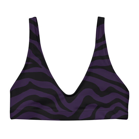 Purple Zebra Print Eco Friendly Bikini Top w/ Removable Padding