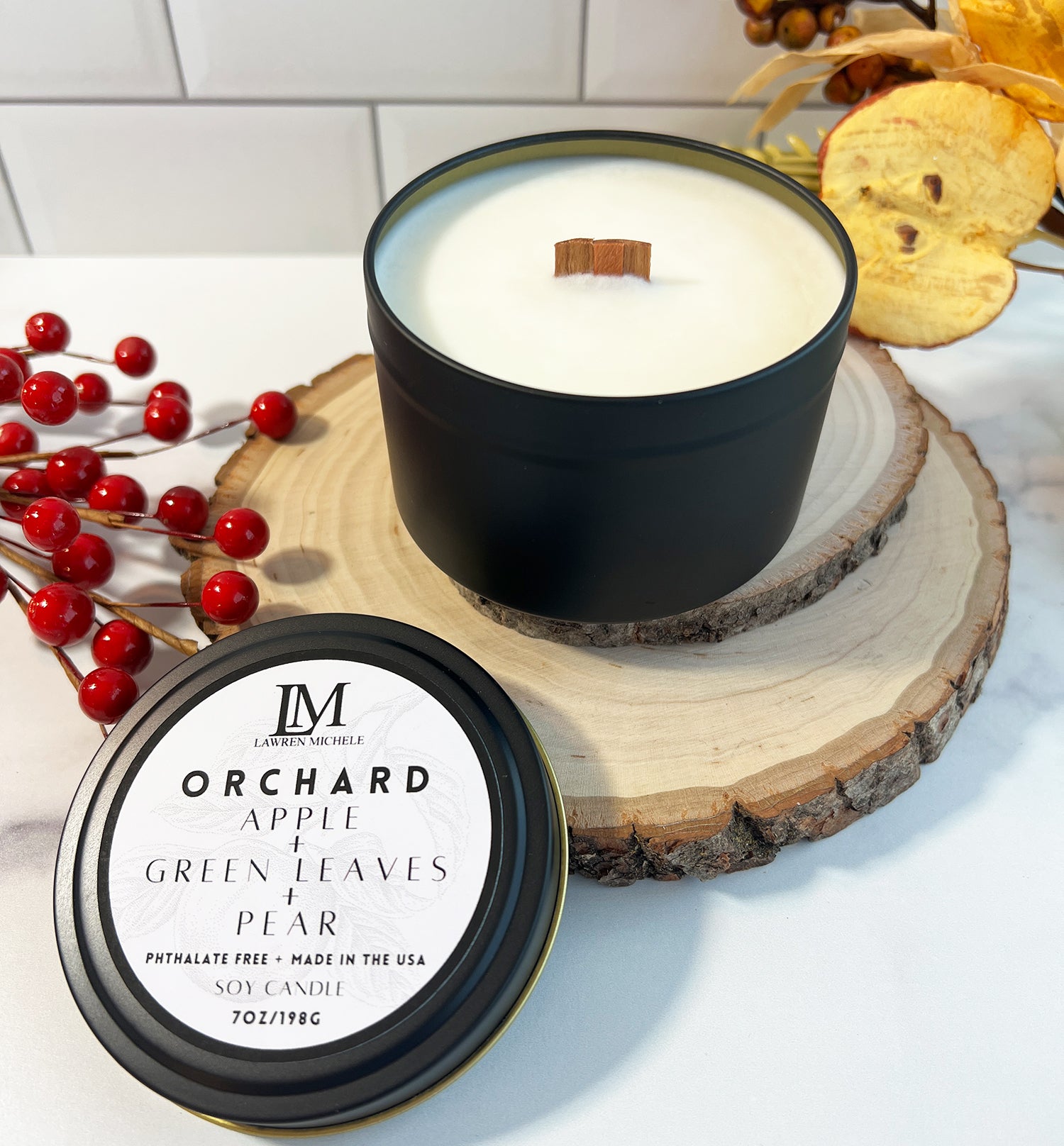 Orchard Soy Wood Wick 7oz Holiday Candle Tin